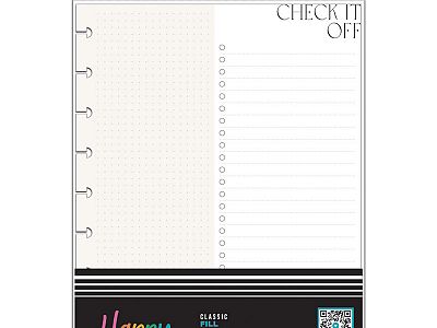 Add this Check It Off Classic filler paper to any Happy Planner or notebook and make your lists and get it done. Action your to dos and brainstorm ideas with this productivity boosting high quality paper. These specialized paper sheets are fitted for Classic size Happy Planner items and feature a neutral design.