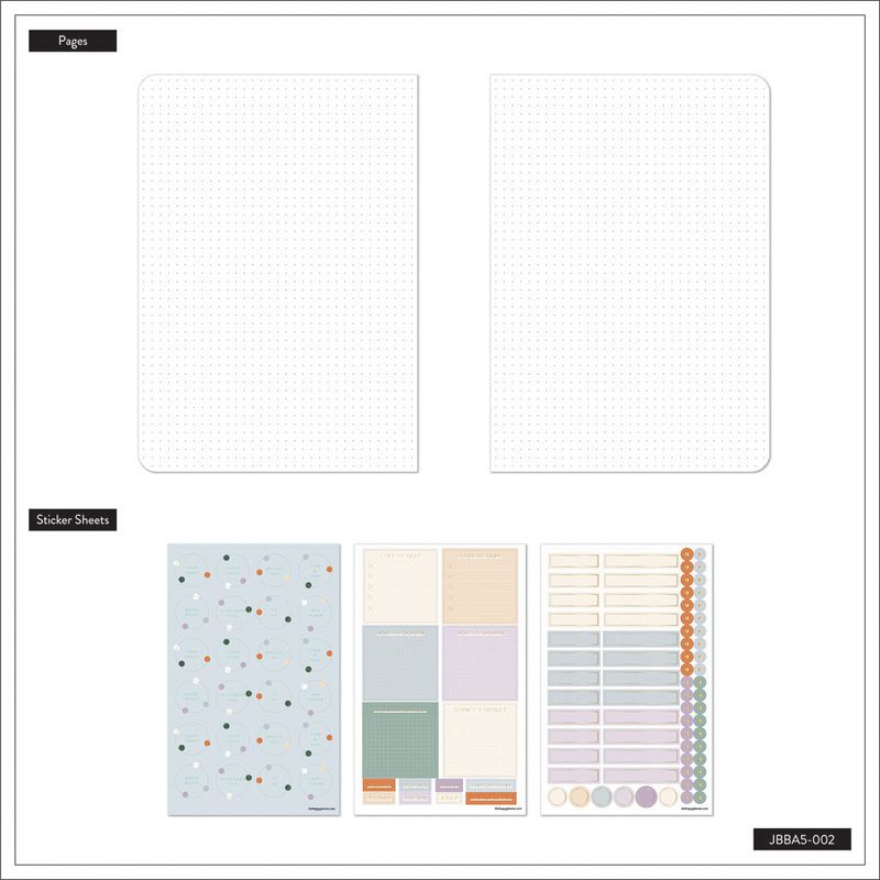 Make a journal that work for you with this Mauve and Moss Bullet Dot Grid Happy Journal. Customize the dot grid pages with stencils and stickers. This design features green and purple accents is ready for your ideas and to dos and musings. Create a system all your own with this versatile journal.