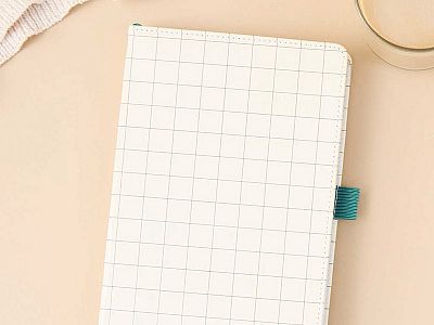 80 page checkered Mauve and Moss notebook ideal for most pen types.
