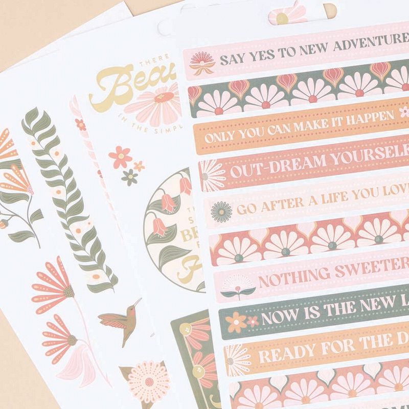 Seize the moment with this Desert Rose 10 sheets of stickers. Make your plans and oasis of artistry with by adding these flourishes to any notebook and Happy Planner or desk and wall calendar.