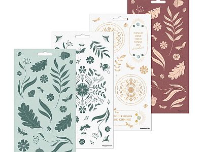 Includes botanical accents and motivational quotes with woodland critters.