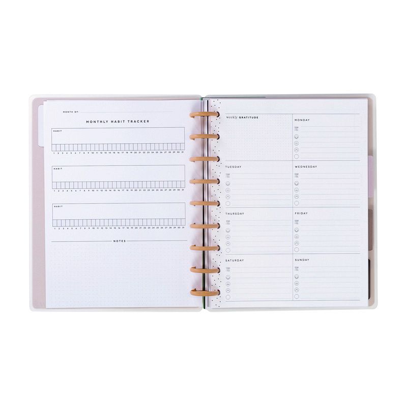 This guided journal includes pages to write out your areas of focus and track monthly habits with weekly goals and includes positive daily reminders.