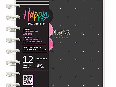Make room for good things with this Sweet and Simple Happy Planner. This Classic size planner features a dashboard layout and undated spreads for flexible planning. The design is perfect for the minimalist who prefers a classy vibe in their aesthetic. Stat motivated to plan your biggest and best goals with a planner that works with your lifestyle. Get organized and stay on top of your everyday and surprise plans with a layout for list makers.