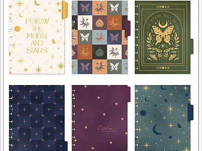 This planner design features celestial accents and inspirational quotes with a rich color palette.