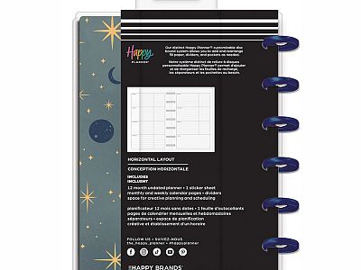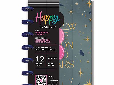 Follow the moon and stars with this Share Your Magic undated Happy Planner. This Mini planner features a horizontal layout was made for traditional planner who love listing. The 12 dividers features mother and butterflies and moons and stars. Keep the wonder in your organization with our disc bound planners. Customize by adding accessories, stickers, and extras. Make your planning system all your own.