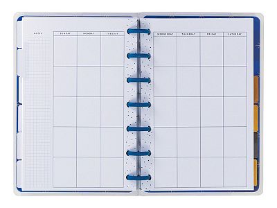 The disc bound system allows you to add or remove pages and personalize with snap in accessories.
