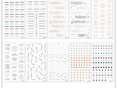 Combination of messages to lift you up and inspire you to reflect and reminder icons and decorative accents.