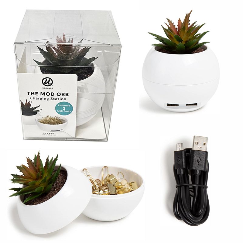 U Brands Mod Orb Paperclip Holder and USB Charging Planter