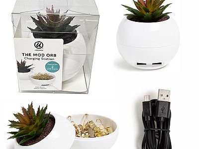 • U Brands Mod Orb Paperclip Holder and USB Charging Planter