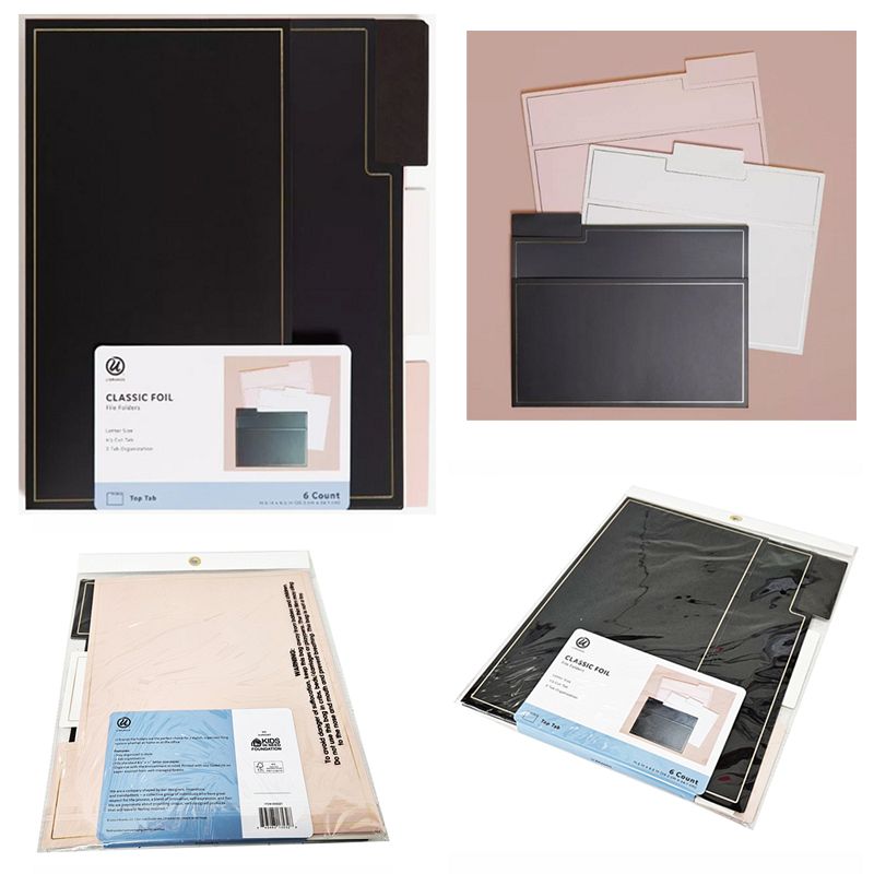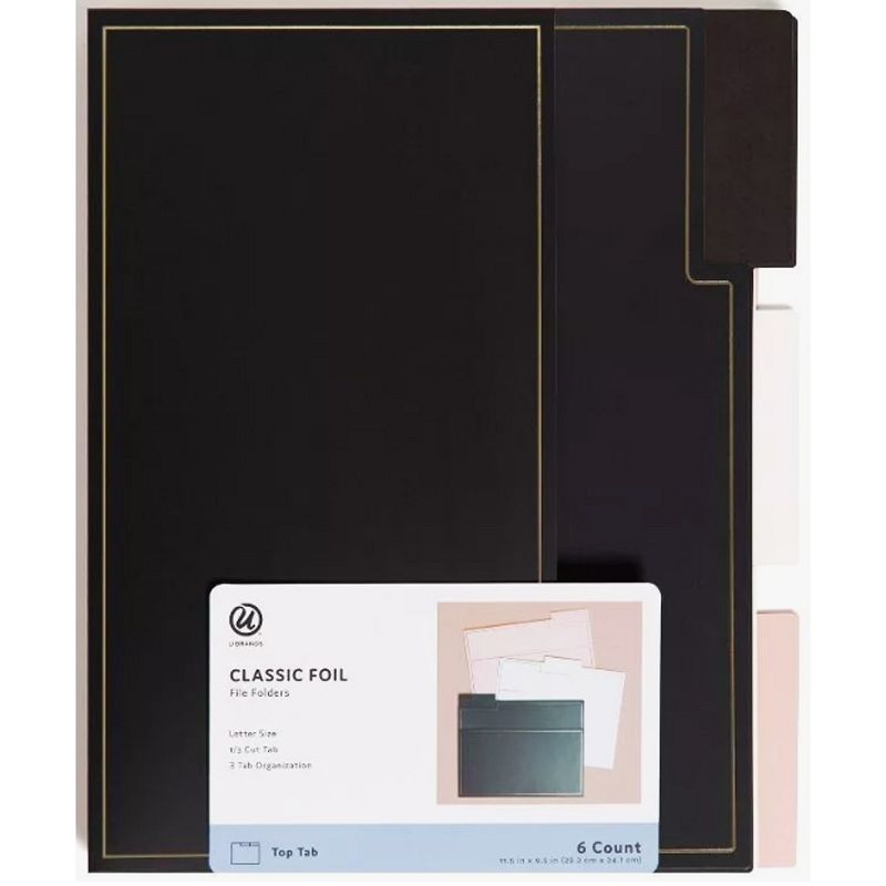 • U Brands 6count Classic Foil Gold Border File Folders with Exterior Pocket