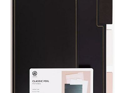 U Brands Classic Foil Gold Border File Folders with Exterior Pocket