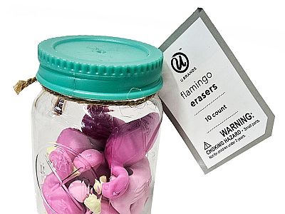 U Brands Flamingo Erasers in Plastic Mason Jar