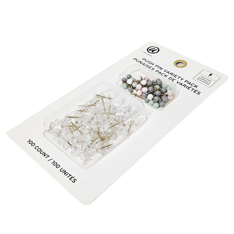 U Brands 100count Fashion Pastel Push Pins Variety Pack