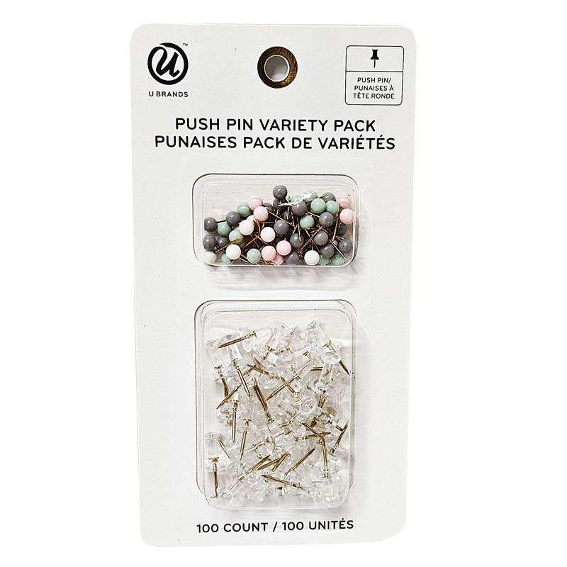 • U Brands 100count Fashion Pastel Push Pins Variety Pack