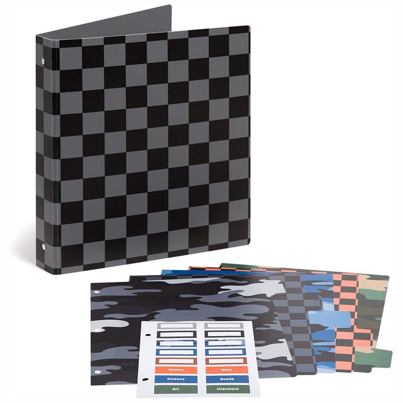 U Brands 2Pack Bold Checkerboard Print Poly Performance 1inch Binder Set with 5 Tab Dividers and Labels