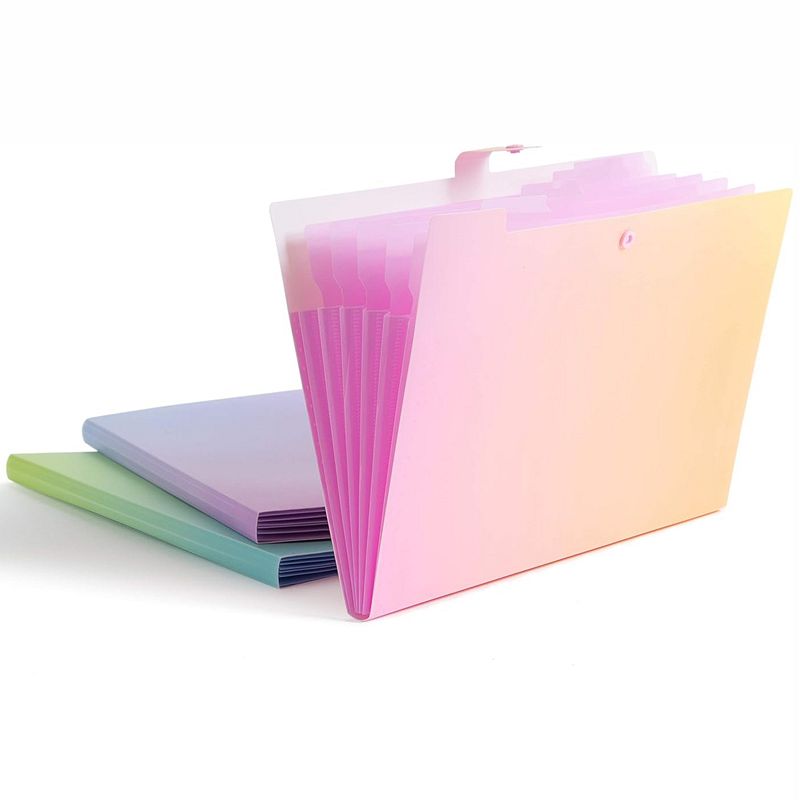 U Brands 3Pack Pastel Ombre Fashion Expanding File Folders with 5 plastic pockets and and snap button closure