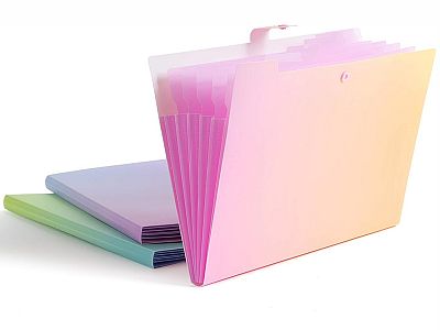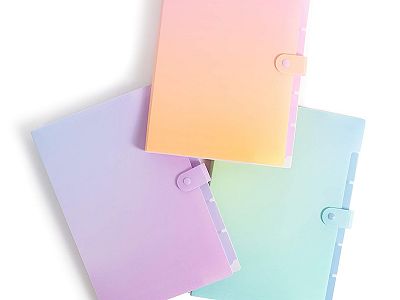 • U Brands 3Pack Pastel Ombre Fashion Expanding File Folders with 5 plastic pockets and and snap button closure