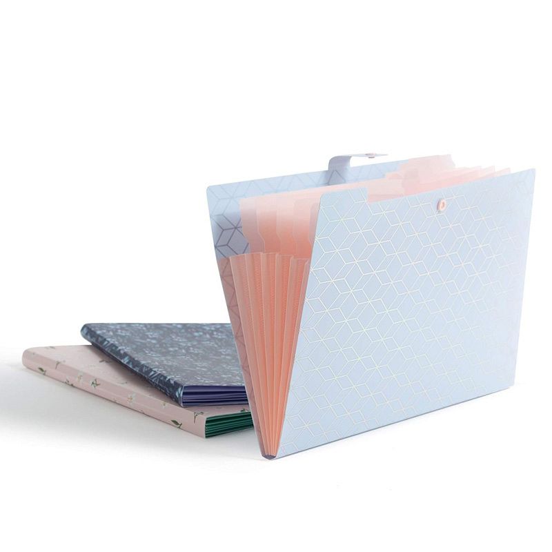 • U Brands 3Pack Trendy Prints Fashion Expanding File Folders with 5 plastic pockets and snap button closure