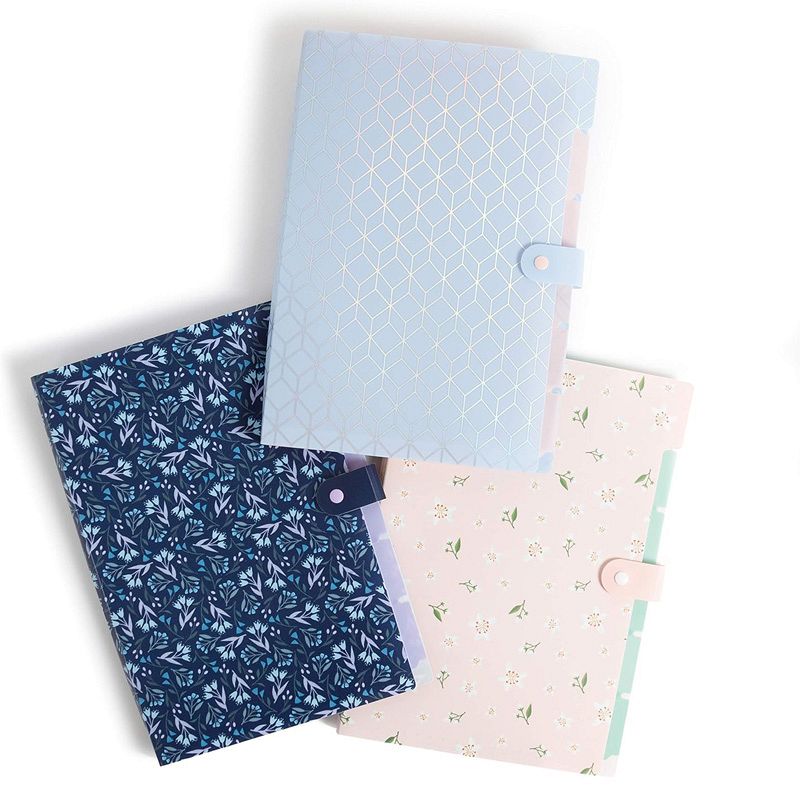 U Brands 3Pack Trendy Prints Fashion Expanding File Folders with 5 plastic pockets and snap button closure
