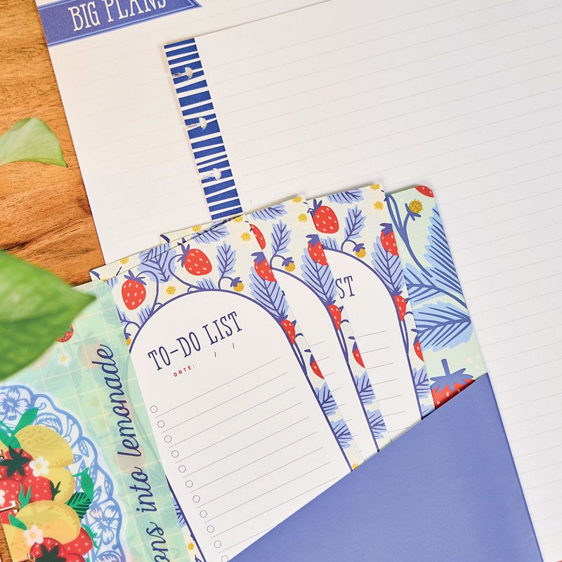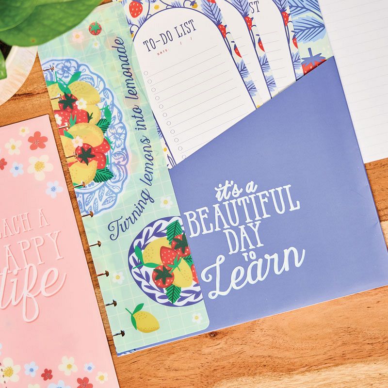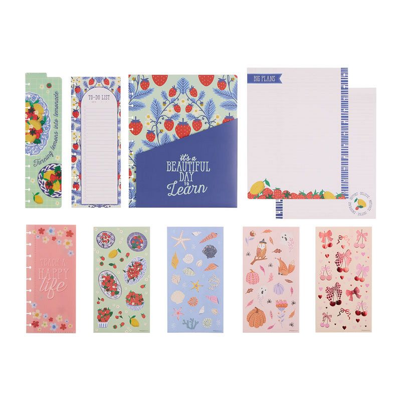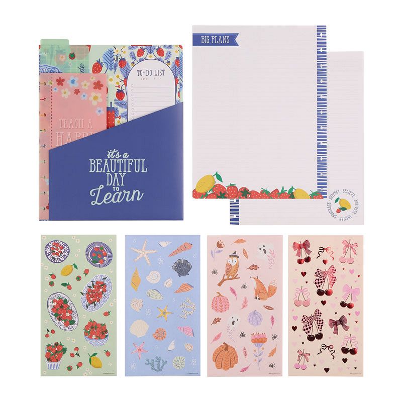 Brighten up your planning with this colorful set featuring 30 sheets of Big notepaper with lined layouts and cheerful seasonal accents. Included are 10 pre punched folded sheets perfect for notes and reminders and 4 vibrant sticker sheets bursting with florals, fruits, critters, and much more in this accessory pack.