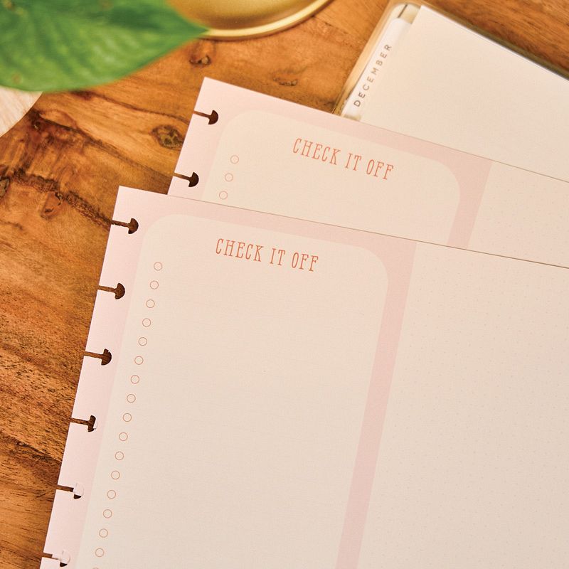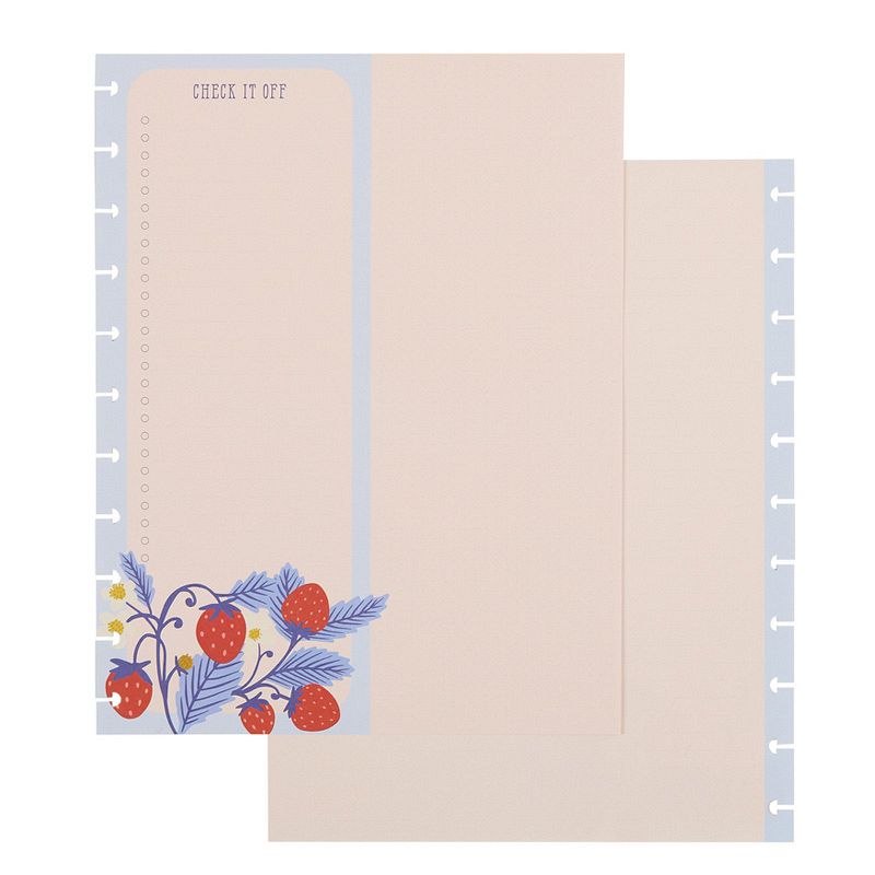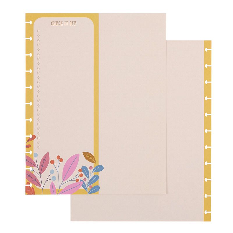 • Front side features a checklist style dashboard with seasonal artwork and Back side is dotted lined for open notes and writing