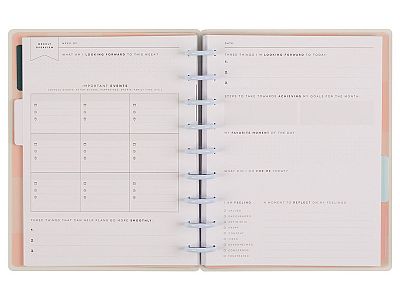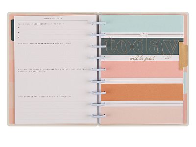 • 4 dividers featuring inspirational quotes and soothing colors to help organize sections