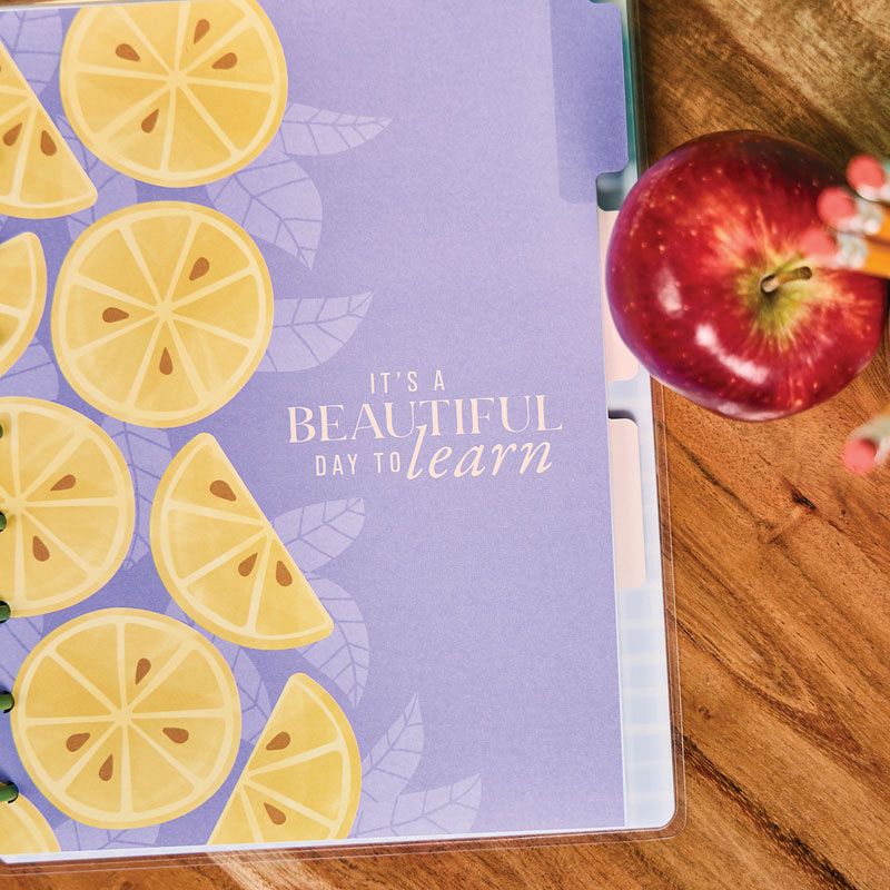 • 3 vibrant dividers, Featuring lemon graphics and uplifting quotes like It's a Beautiful Day to Learn and Life is Better with a Smile