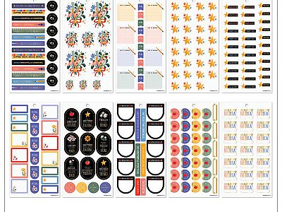 Filled with motivational quotes, icons like coffee mugs, books and flowers, along with functional labels