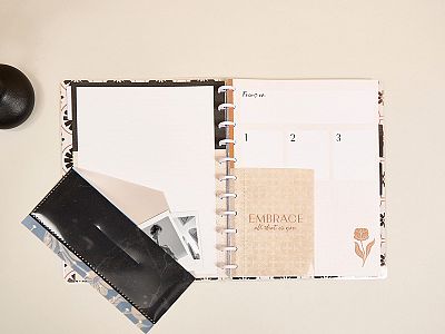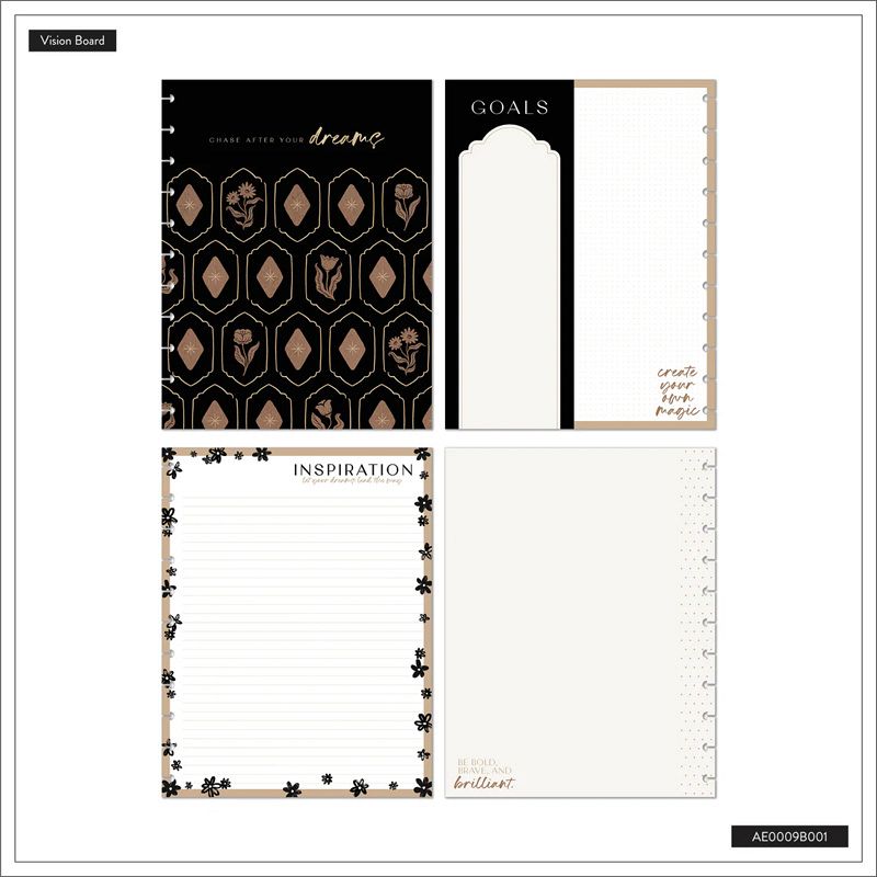 Expand your plans with this Modern Craft planner companion pack. It includes a dashboard, storage folder, vision boards, notepaper, stickers, envelopes, a zip pouch, and a pocket folder. Add these modern and muted planner accessories into your Big size Happy Planner. This pack is for Big Happy Planners, notebooks, and journals.