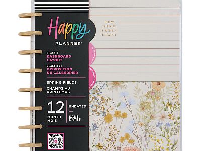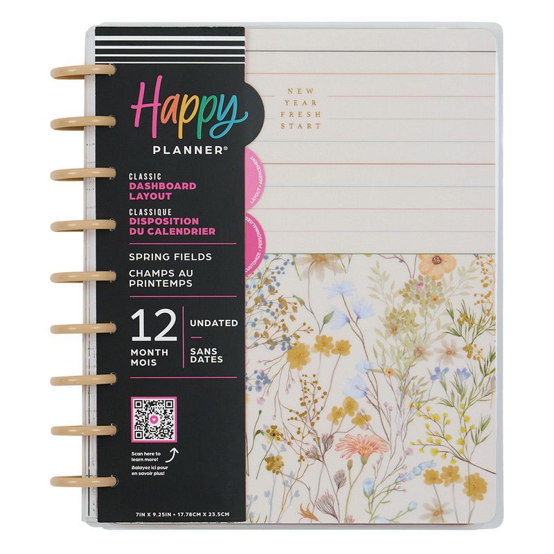 Good days are ahead with this The Happy Planner Spring Fields Classic planner. With 12 undated spreads dashboard layouts and floral accents it is perfect for organizing and decorating your year.