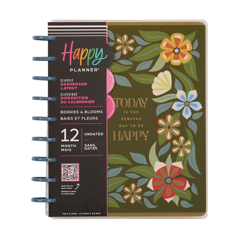 Life is in this moment with a Happy Planner Berries & Blooms Classic 12-Month Undated Planner. This classic-size dashboard layout planner features a dashboard layout and 12 months of undated spreads.
