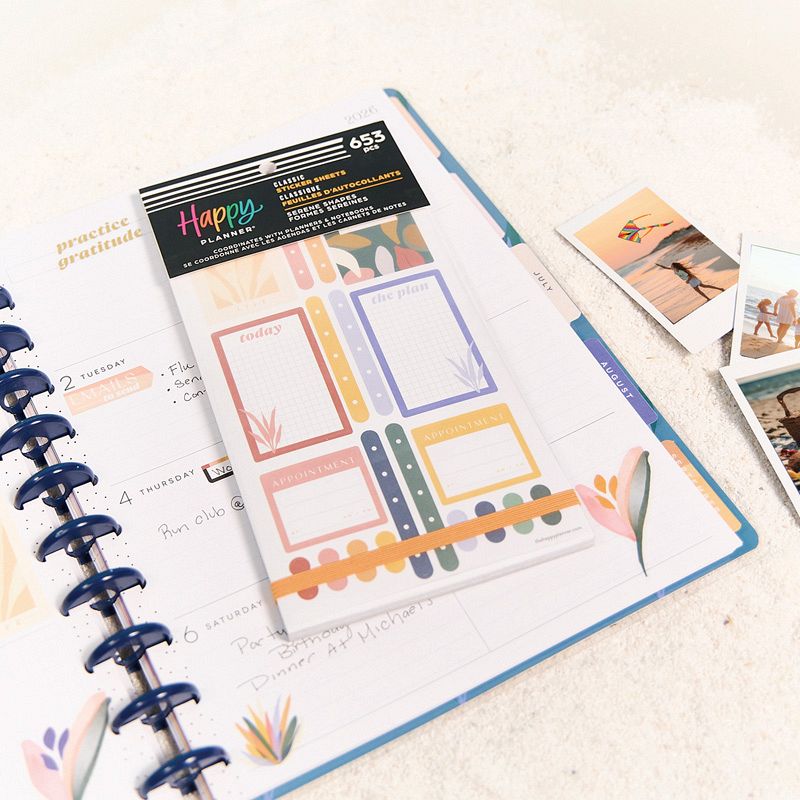 Bring calm to your planning with this The Happy Planner Serene Shapes sticker book. With 653 themed stickers in floral and botanical designs it is perfect for decorating Classic size planners.