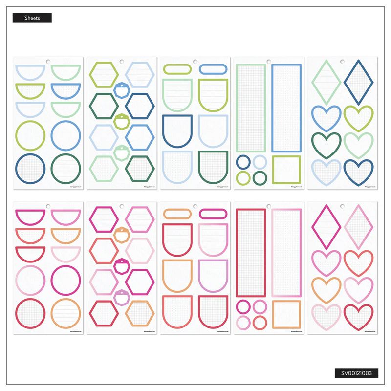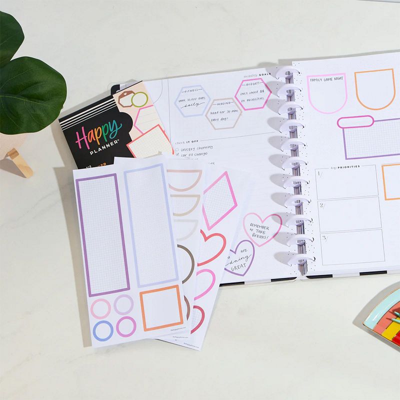 Add structure to your layouts with this The Happy Planner Bright Colorful Boxes sticker book. With 264 functional and decorative stickers in vibrant colors it is perfect for notes reminders and creative planning.