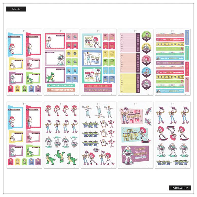 Celebrate 30 years of Disney and Pixar magic with this The Happy Planner Toy Story sticker book. With 393 themed stickers featuring Woody Buzz and friends it is perfect for decorating and organizing Big size planner spreads.