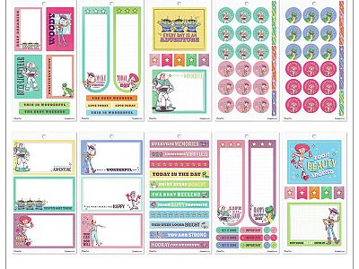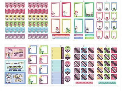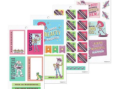 Combination of memo boxes reminder flags and Toy Story character stickers