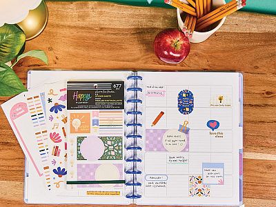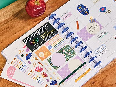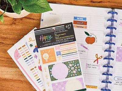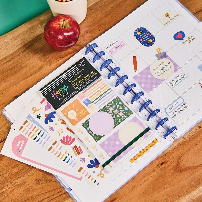 Brighten every school day with this The Happy Planner teacher sticker pack. With 677 colorful designs, functional boxes, motivational phrases, and whimsical classroom art, itâs perfect for lesson planning and organizing.