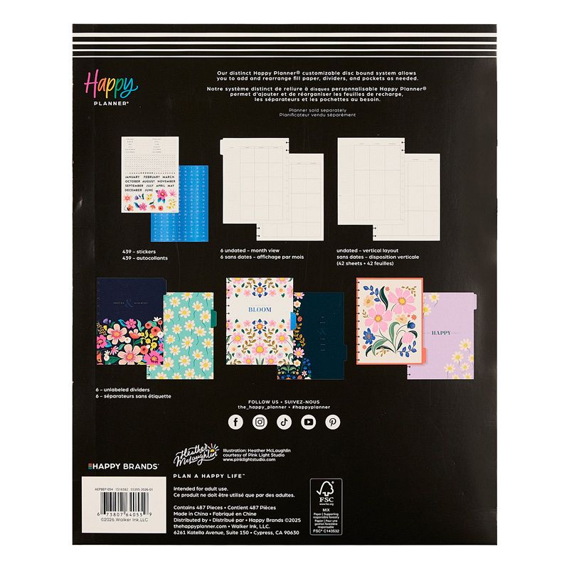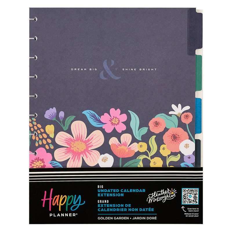 Transform your planning with the Happy Planner Golden Garden Big Extension Pack! If you're in need of more space to bring your vision to life, this delightful pack is teeming with essential accessories crafted to enhance and transform your Happy Planner Golden Garden Big planner into a true reflection of your creativity. This pack features artwork by Heather McLaughlin. Each extension pack features 2 beautiful sticker sheets with 439 stickers, 6 undated month views, 42 sheets of undated Vertical Layout weekly views, and 6 unlabeled dividers, all crafted to ignite your creativity as you organize your thoughts and turn your dreams into reality.