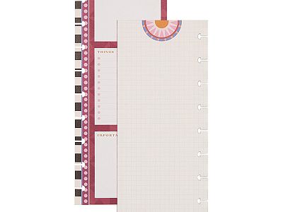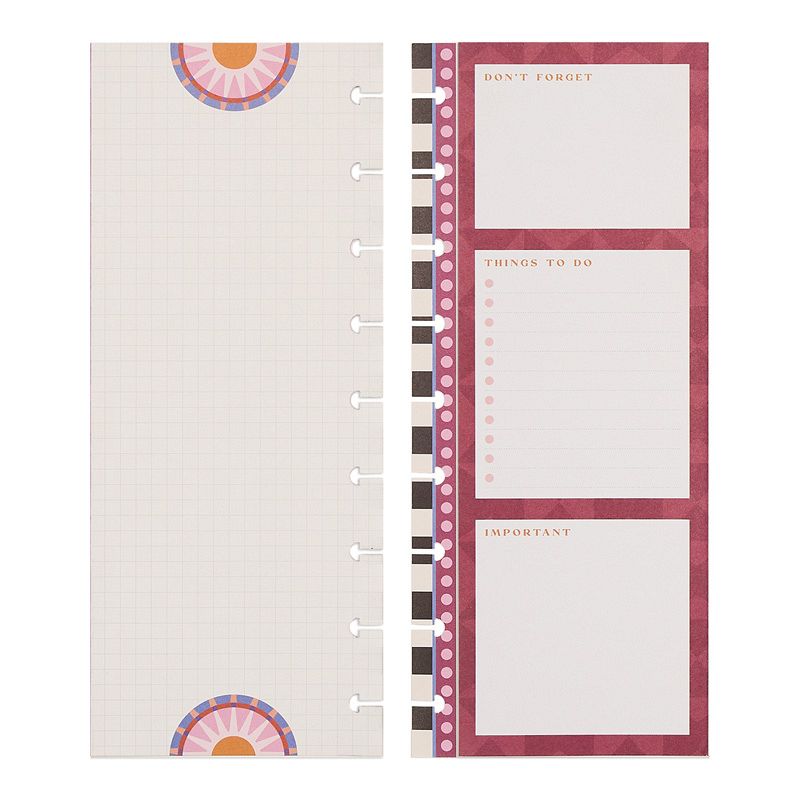 One side contains a simple dot-lined sheet, while the other side includes sections labeled "Don't Forget," "Things To Do," and "Important." Infused with colorful margin art and a straightforward design, these sheets are essential for planners and writers alike. Transform your planning routine with the Happy Planner and unlock your creativity today!