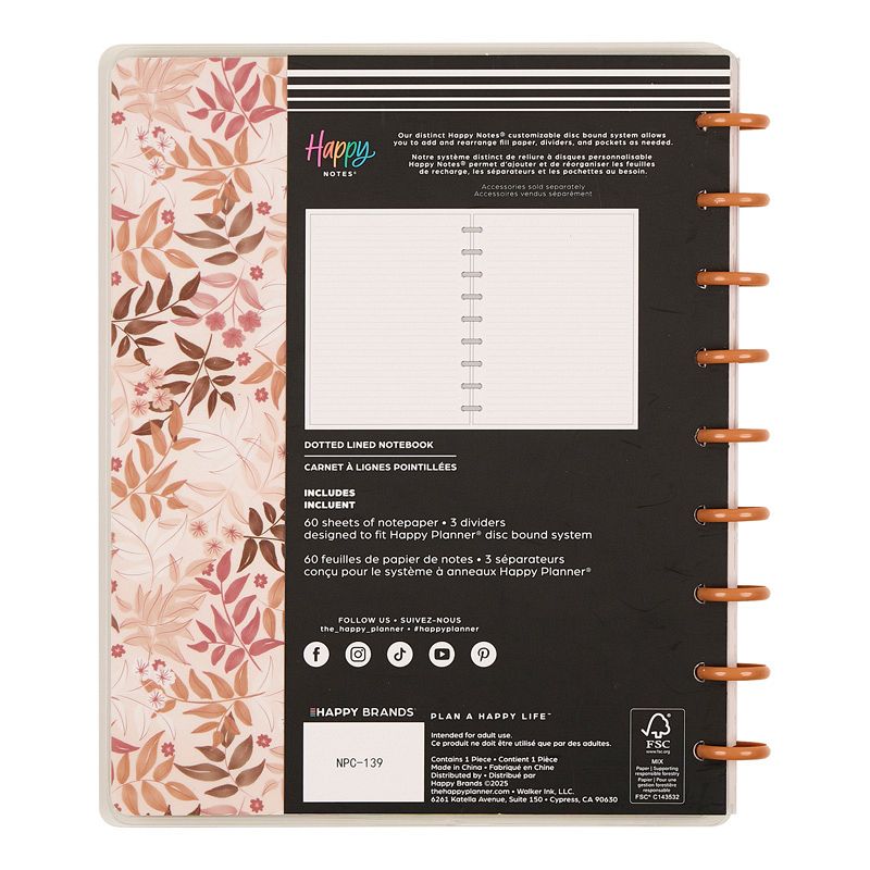 The Happy Planner Dune Hues Classic Disc Bound Notebook draws inspiration from calming sepia-toned landscapes, blending soft, earthy tones with a clean, modern aesthetic. Inside, you'll find 60 smooth, high-quality sheets and 3 dividers that provide the perfect canvas for notes, journaling, sketches, or daily planning. Stylish, durable, and effortlessly serene, it's a beautiful companion for capturing thoughts wherever your day takes you.