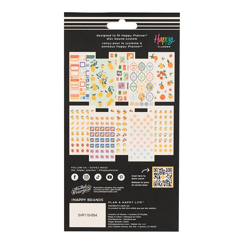 Brighten your plans with sun-kissed charm. The Happy Planner Coastal Cottage 10 Sheet Sticker Value Pack features 311 beautifully illustrated stickers with artwork by Heather McLaughlin. Inspired by citrus groves and Mediterranean coastal style, this collection includes vibrant lemons, breezy patterns, and charming accents perfect for decorating planners, journals, or stationery. Fresh, cheerful, and full of coastal warmth â these stickers bring a touch of vacation magic to every page.