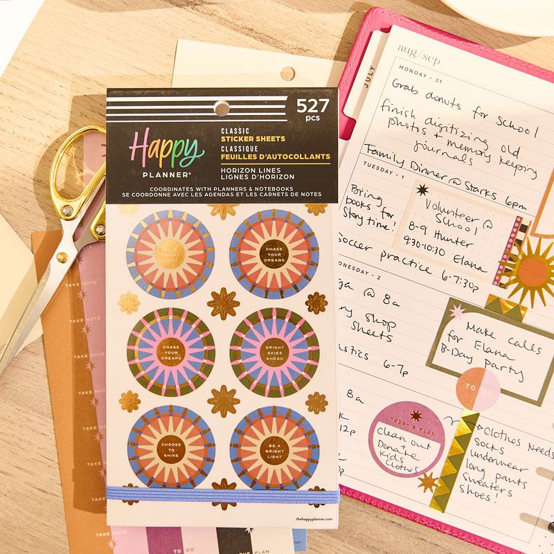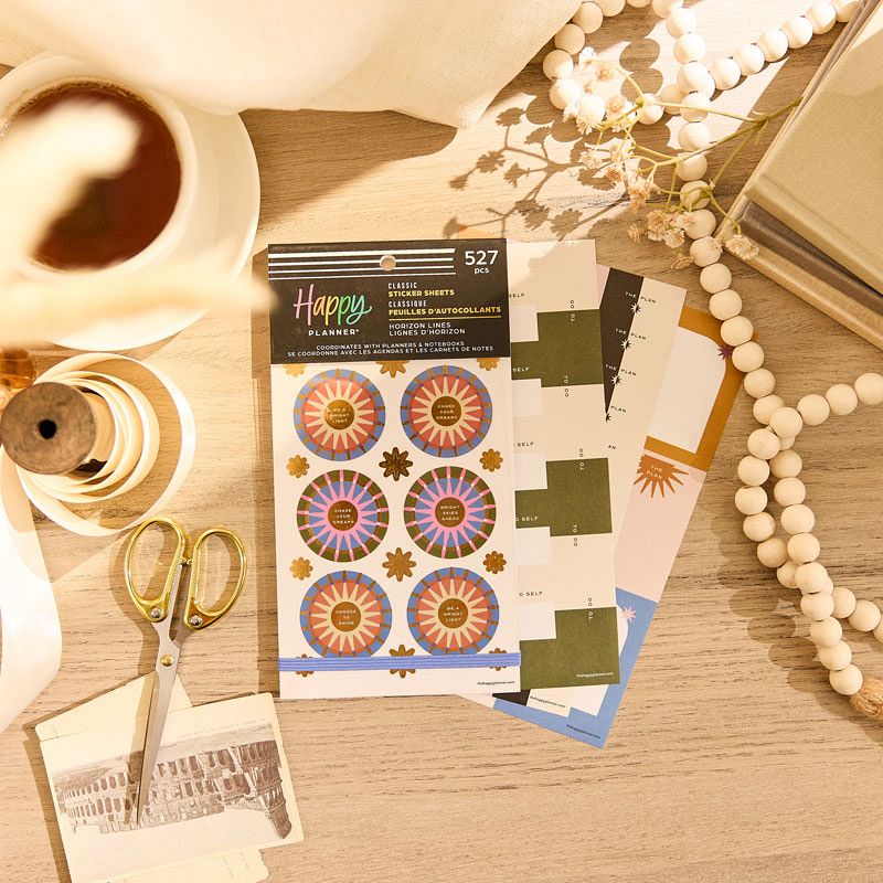 Give your planning a modern, structured edge with the Happy Planner Horizon Lines 30 Sheet Sticker Value Pack. Featuring 527 stickers, this collection blends geometric patterns, clean lines, bold colors, and minimalist accents for a sleek, contemporary look. With a mix of decorative elements and functional labels, it's perfect for enhancing planners, journals, and creative projects. Stylish, balanced, and thoughtfully designed, these stickers bring clarity and calm to every page.