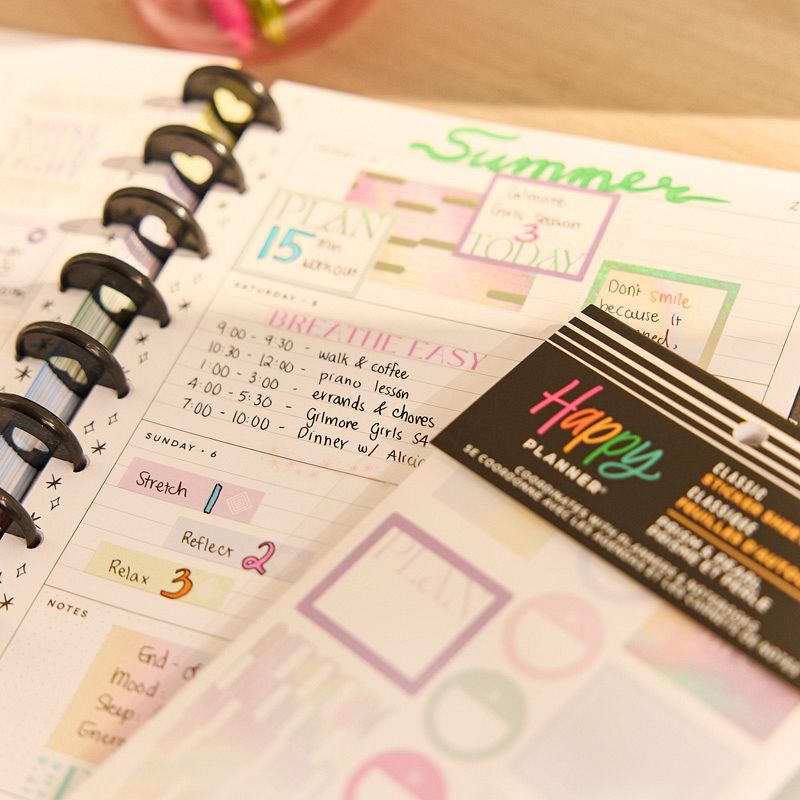 Add luminous charm to every page with the Happy Planner Prism & Pearl 30 Sheet Sticker Value Pack. Featuring 970 iridescent-inspired designs, this collection shimmers with pearlescent-like accents, prismatic shapes, and dreamy decorative details. Perfect for planners, journals, scrapbooks, and creative projects, these stickers bring a touch of shine and sophistication to any layout. Dazzling, modern, and beautifully coordinatedâthis pack lets your creativity glow.