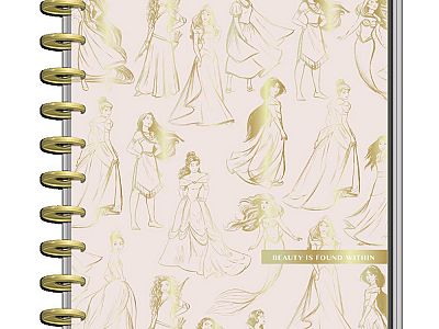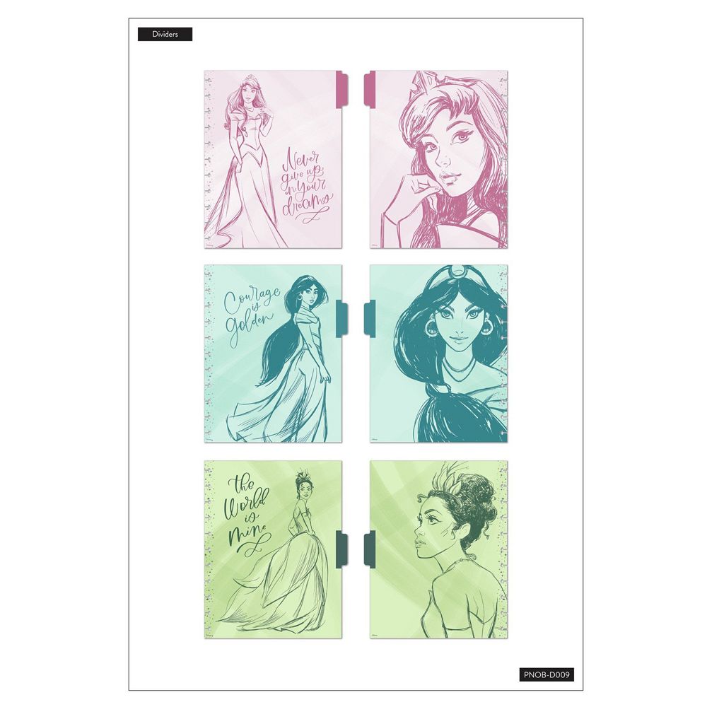 Beauty is found within. Journal your thoughts and manifest your dreams with this Big notebook. It features 60 lined sheets featuring artwork of Disney Princess characters Belle and Tiana. The cover art has designs with Snow White, Cinderella, Aurora, Ariel, Belle, Jasmine, Pocahontas, Mulan, Tiana, Rapunzel, Merida, and Moana. Includes 3 dividers that can be removed and replaced using the Happy Planner disc bound system. 60 pages lined front and back with Belle and Tiana artwork 3 dividers with artwork featuring Aurora, Jasmine, and Tiana with Disney quotes Inner laminated covers feature Cinderella and Ariel artwork The Big size notebook provides plenty of space for note taking or journaling.