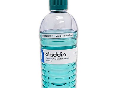 Aladdin's Two-Way Lid Water Vessel makes it easy to ditch disposable water bottles. It has a two-way lid twist off the dome lid to easily add ice or clean; twist off the cap to drink and is dishwasher safe. It also fits in most car cup holders and is leak-proof, so it is great for on-the-go.
