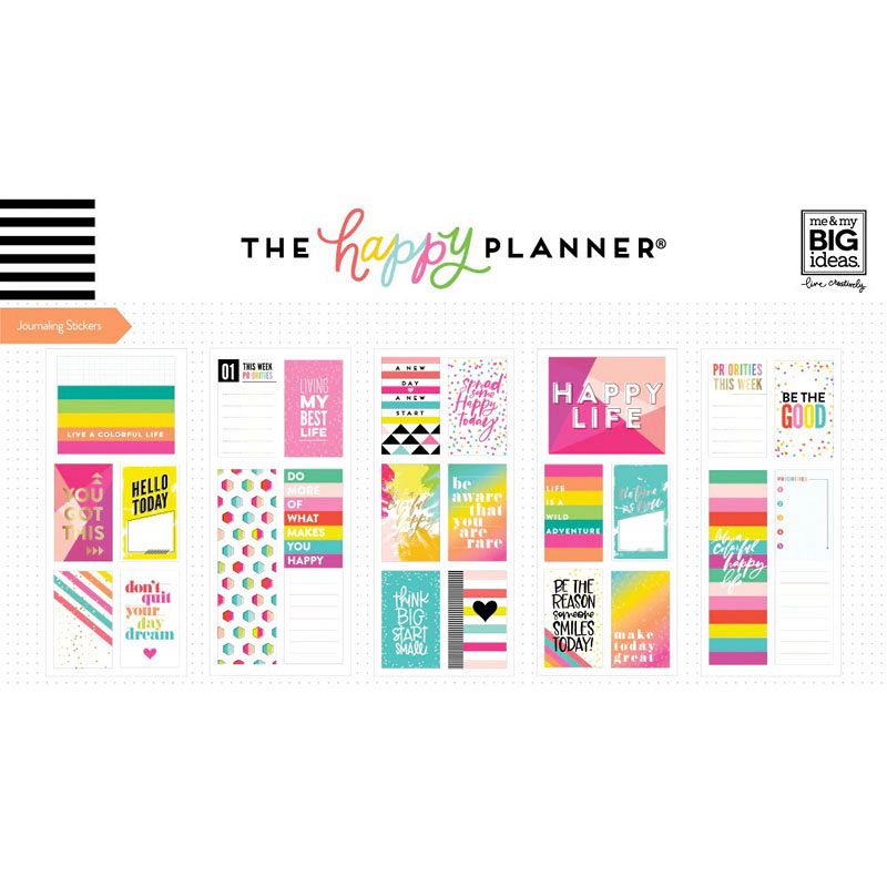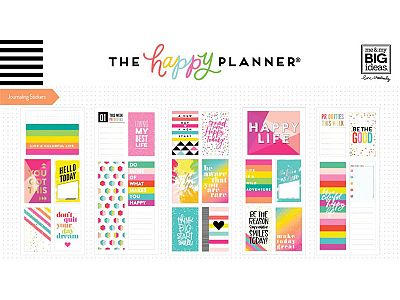 Live a colorful life! The Happy Planner® Jounaling Stickers are such a cute way to journal in your planner with style! Be inspired by a cute quote, design or prompt on the front, then FLIP open to find more on the inside!